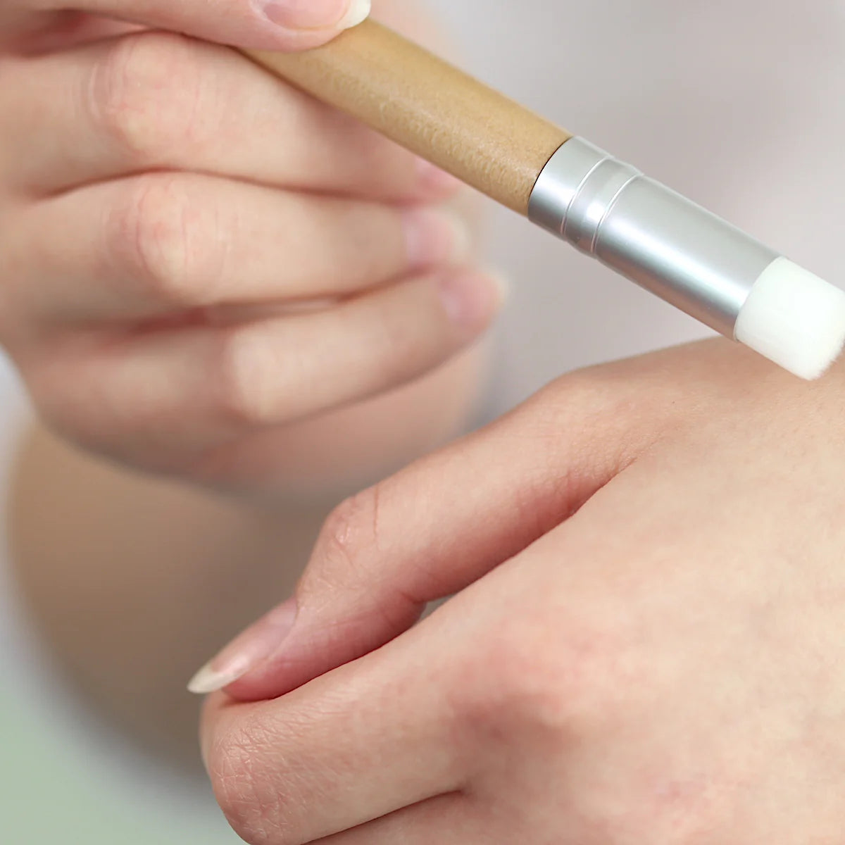 Das Lash Shampoo sanft bei geschlossenem Auge von oben nach unten in kreisenden Bewegungen sanft über die Wimpern streichen.